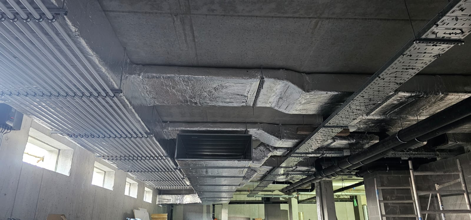 • Volledige kelder en watermeter lokalen, alle toe- en afvoer leidingen, brandkleppen